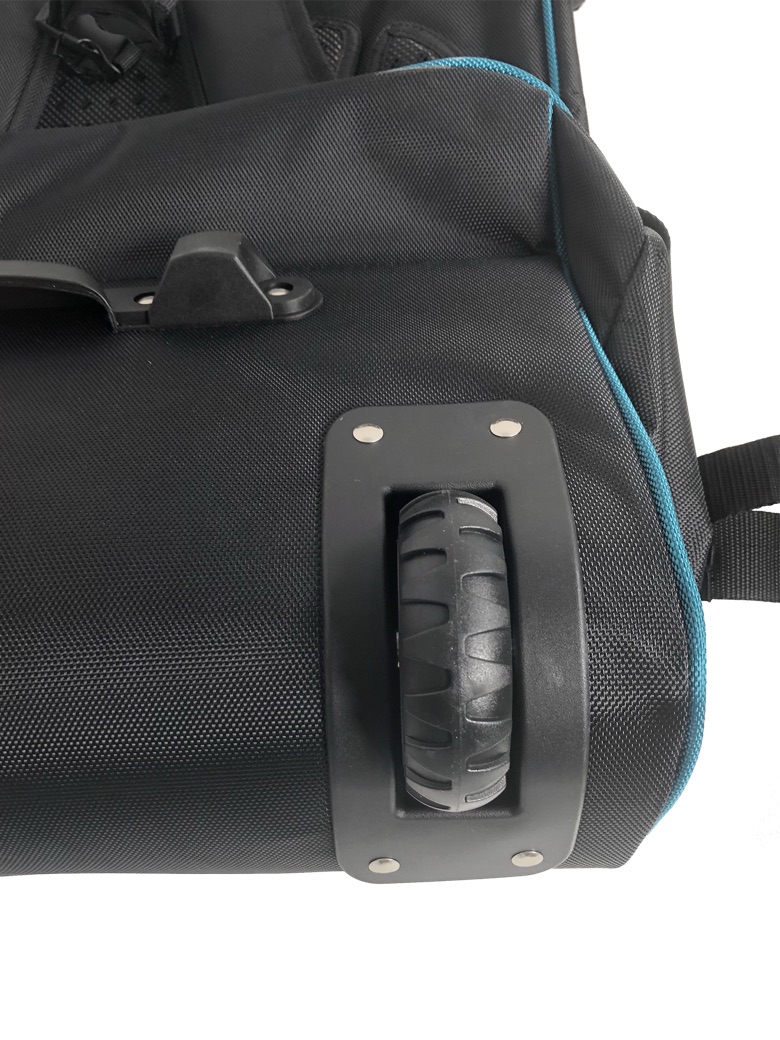 Airdēlis iepakots mugursomā – var pārvadāt auto, sabiedriskajā, nest kā palielu mugursomu, vai pat vilkt pa gludu virsmu kā somu uz ritenīšiem.